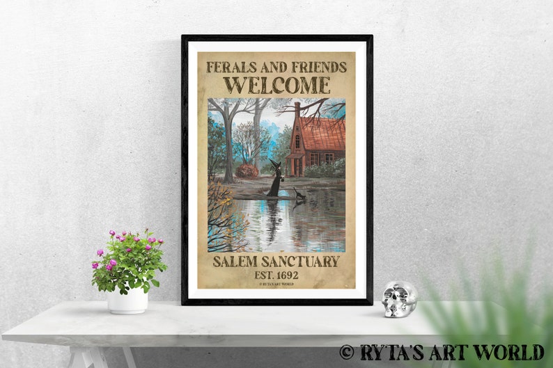 Poster Lake Bewitched Ryta Feral Familiars Salem Sanctuary Black Cat Halloween Autumn Fall Bat Witch Fine Wall Art Horror Frightening Spooky Prints Art Collectibles Sunray Fm De