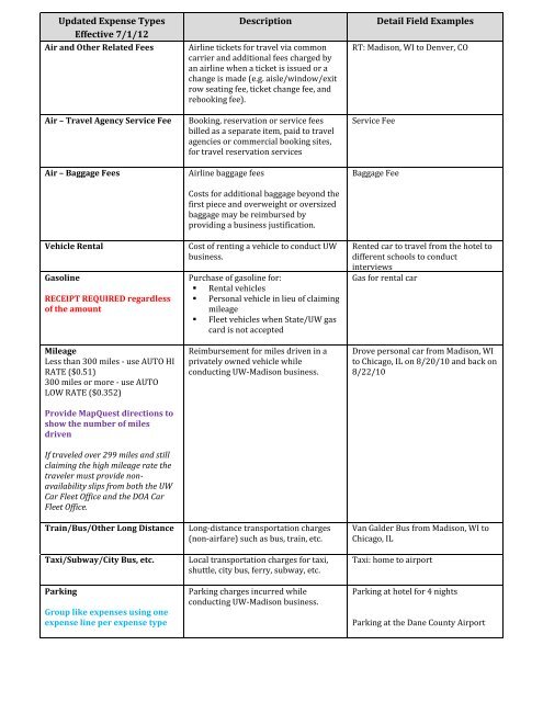 E Reimbursement Travel Expense Types Amp Detail Entry Mywcer